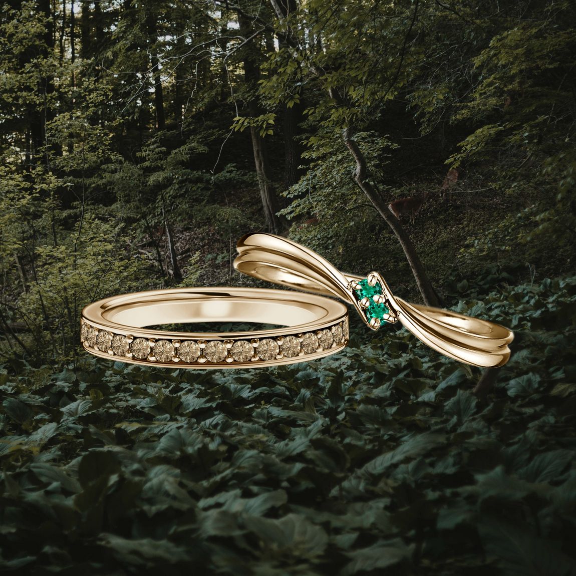 Anel de Esmeraldas e Diamantes, Ouro Sephia® - HEART BEAT Siders